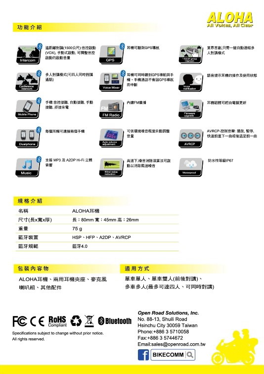 BIKECOMM 藍牙通訊系統